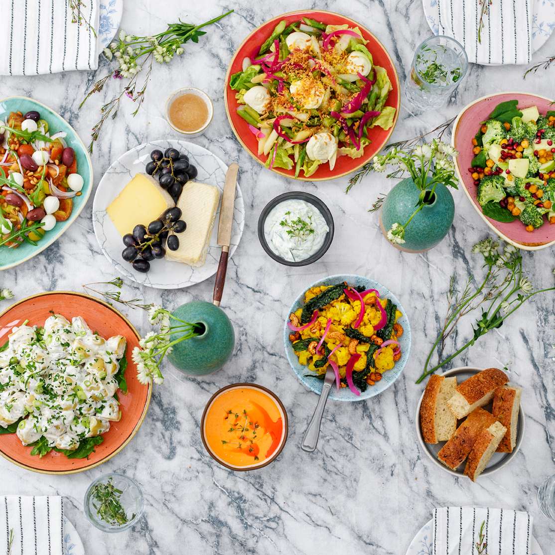 Syltet gresskar, tørket frukt, ristede valnøtter og sennepsdressing